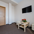 Просторный номер Люкс комфорт на 60 кв.м. позволит Вам не просто насладиться комфортным отдыхом, но и откроет прекрасный вид на город, обеспечит Вам хорошее настроение и поразит своей роскошностью и удобством. Номер удобно разделен на две зоны, что позволит гостям не только работать, но и отдыхать. Хороший и крепкий сон обеспечит шикарная двуспальная кровать в отдельной комнате, где есть ЖК-телевизор и телефон для внутренней и городской связи. Для более комфортного пребывания вы можете заказать завтрак в номер, не вставая с дивана, покоряйте просторы интернета бесплатно! Большой и вместительный шкаф, мягкий диван и кресло, холодильник в номере – все это позволит Вам пребывать в прекрасном настроении и хорошем расположении. А расслабиться после тяжелого трудового дня Вам поможет джакузи в номере. Номер располагает:
